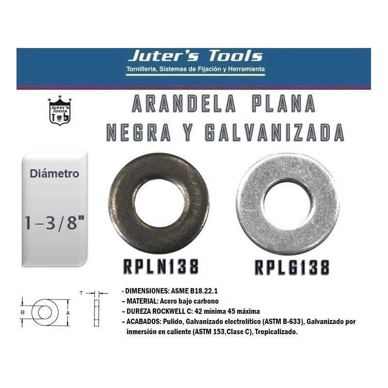 ARANDELA PLANA NEGRA o GALVANIZADA 1-3/8"